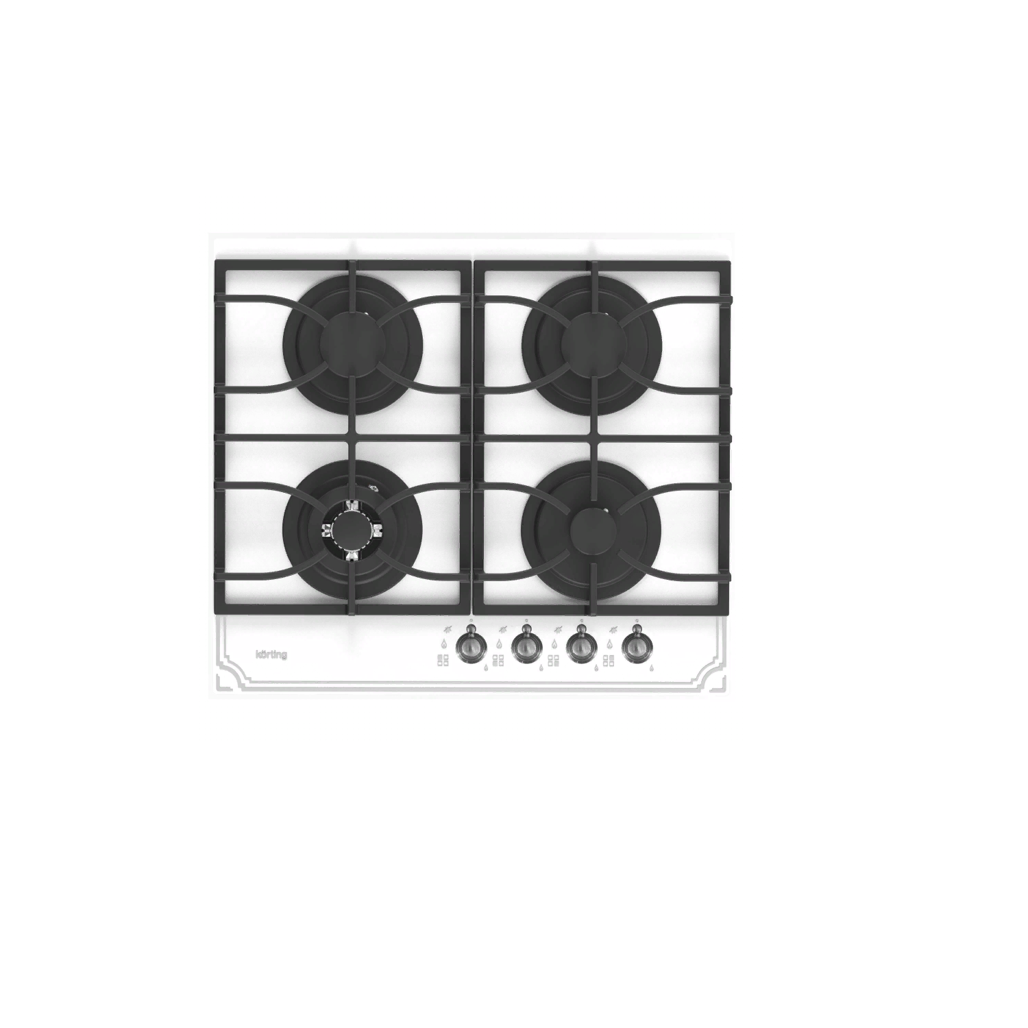 Газовая стеклянная варочная панель Korting HGG 6911 CTRW, белая, газ-контроль, электроподжиг, чугунные держатели для посуды, WOK-конфорка, удобные поворотные переключатели, безопасное управление, ретро дизайн