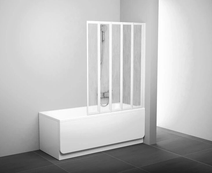 Купить Шторка для ванны складывающаяся пятиэлементная Ravak VS5 белая+рейн 794E010041