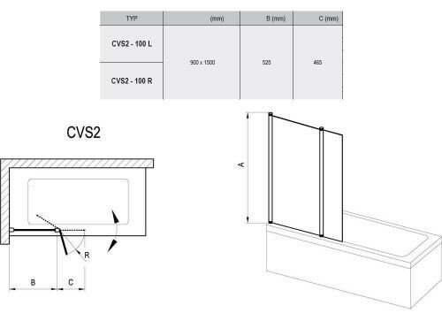 Шторка для ванной CVS2-100 L блестящий+стекло Transparent