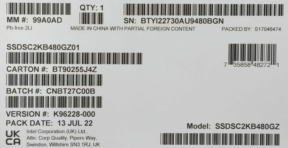 СохранитьSSD Intel D3-S4520 SSDSC2KB480GZ01 интересное: