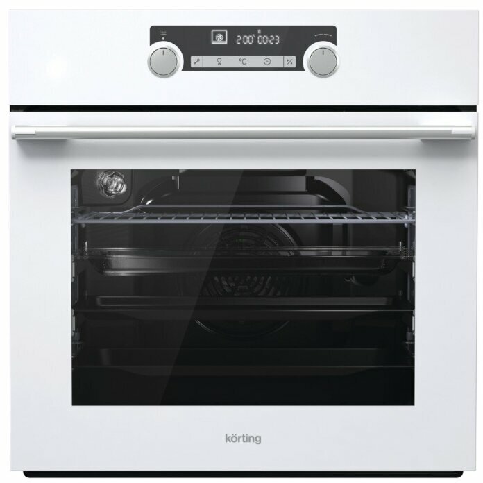 Встраиваемые электрические духовки Korting/ 59.5x59.5x56.4 см, Поворотные, утапливаемые регуляторы + Сенсорное, гриль, Каталитическая с паром, белый