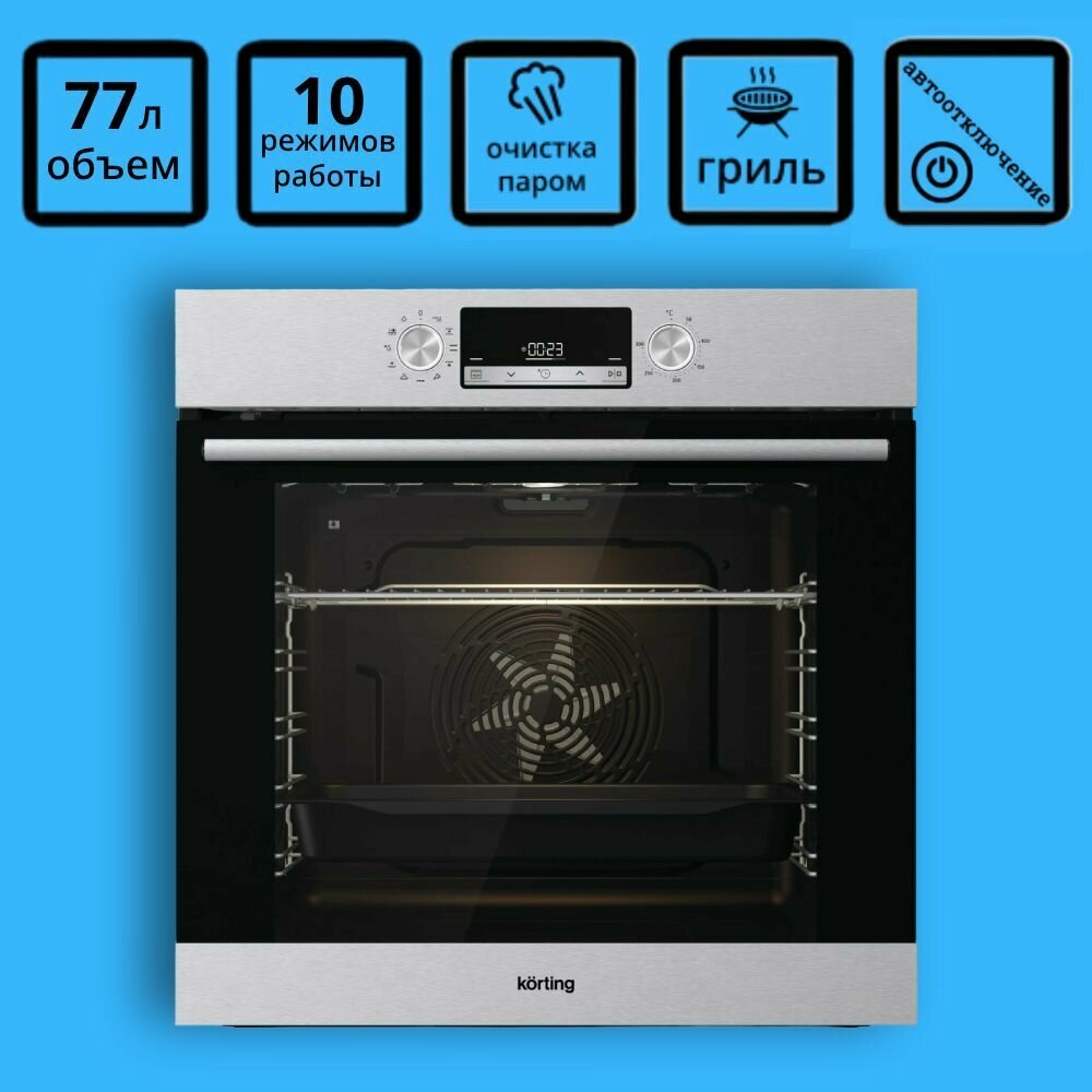 Встраиваемая электрическая духовка Korting с сенсорным управлением VISION LED, панель управления - метал(нерж сталь), LED дисплей белого цвета, утаплив. поворотные регуляторы