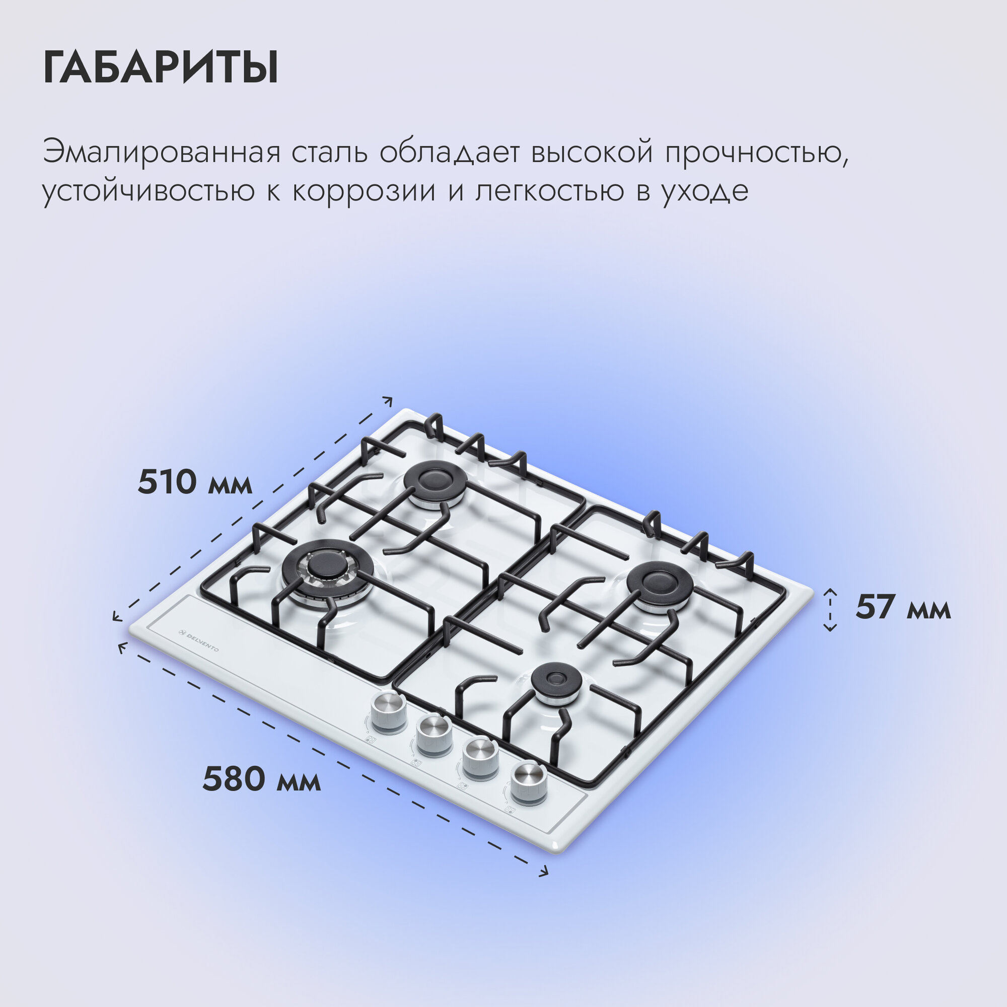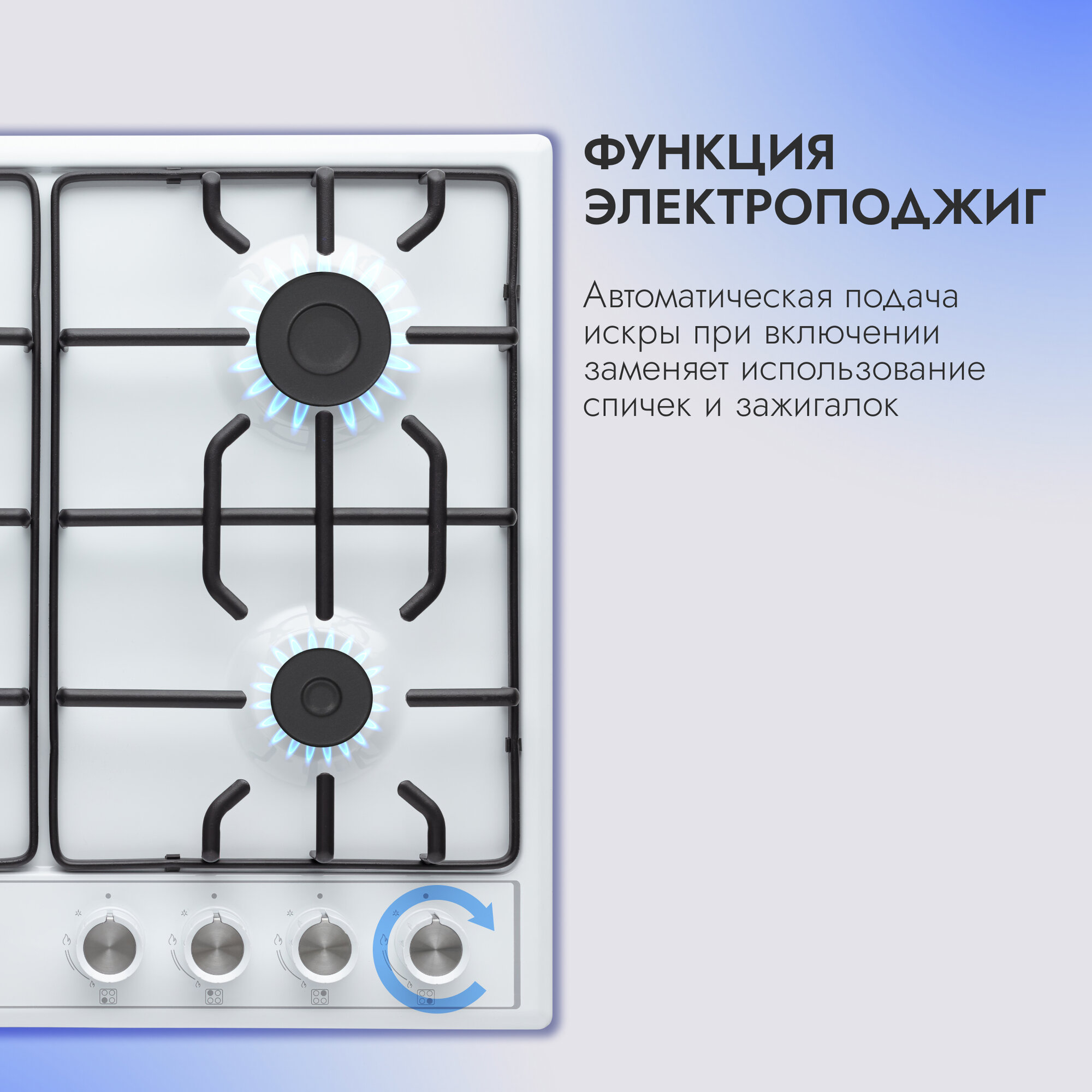 Варочная панель газовая DELVENTO V60V41W001 60 см, WOK-конфорка, белый