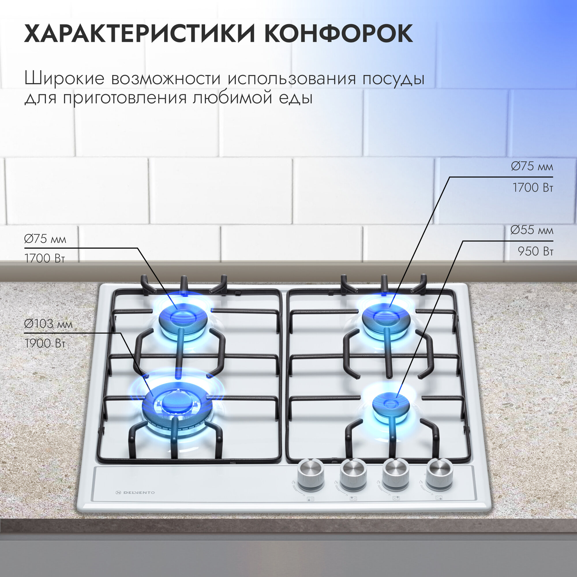 СохранитьГазовая варочная панель DELVENTO V60V41W001 60 см, WOK-конфорка, белый интересное: