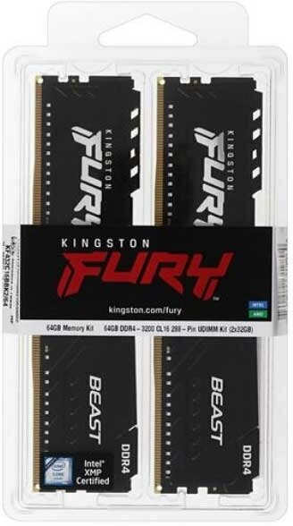 Купить Kingston Fury Beast Black DDR4 DIMM 3200Mhz PC25600 CL16 - 64Gb (2x32Gb) KF432C16BBK2/64