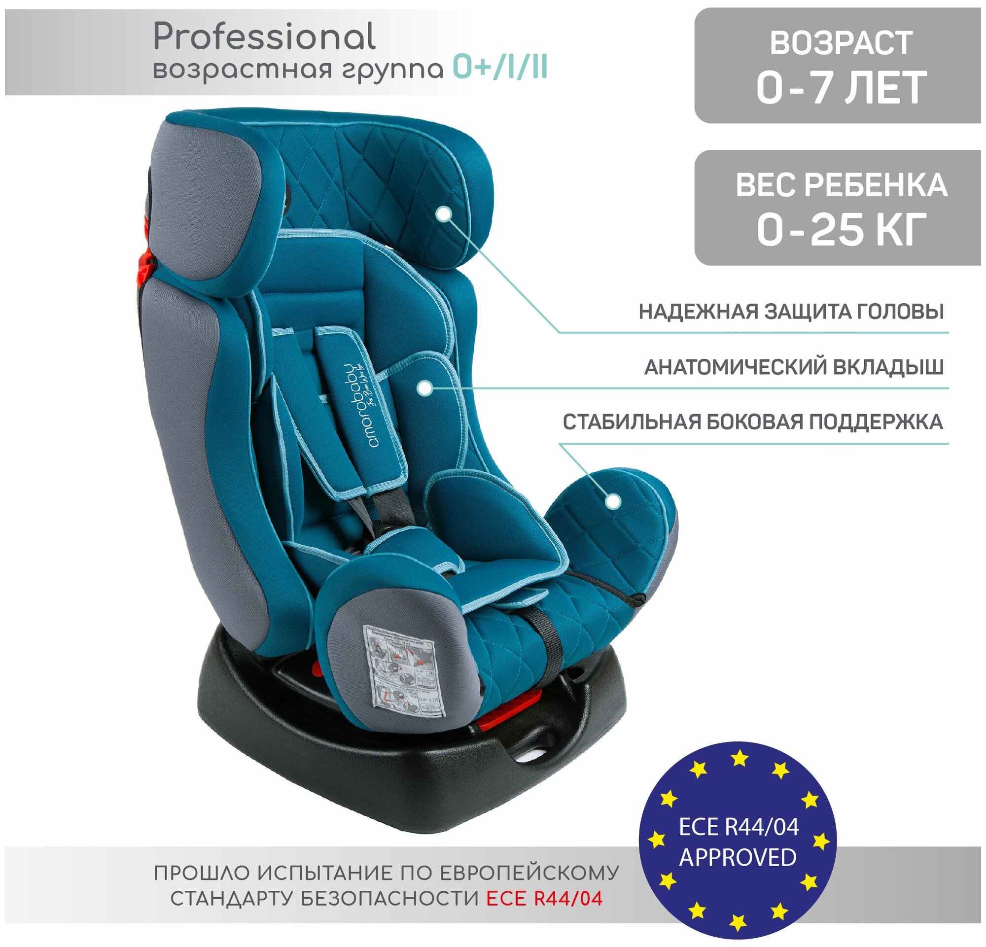 Купить Автокресло детское AMAROBABY Professional, группа 0+/I/II, (бирюзовый)