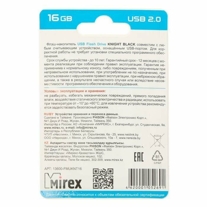 Ниже Вы можете прочитать отзывы на Флешка Mirex KNIGHT BLACK, 16 Гб, USB2.0, чт до 25 Мб/с, зап до 15 Мб/с, черная, ознакомится с подробными характеристиками, посмотреть интересные обзоры и фотографии на Флешка Mirex KNIGHT BLACK, 16 Гб, USB2.0, чт до 25 Мб/с, зап до 15 Мб/с, черная.