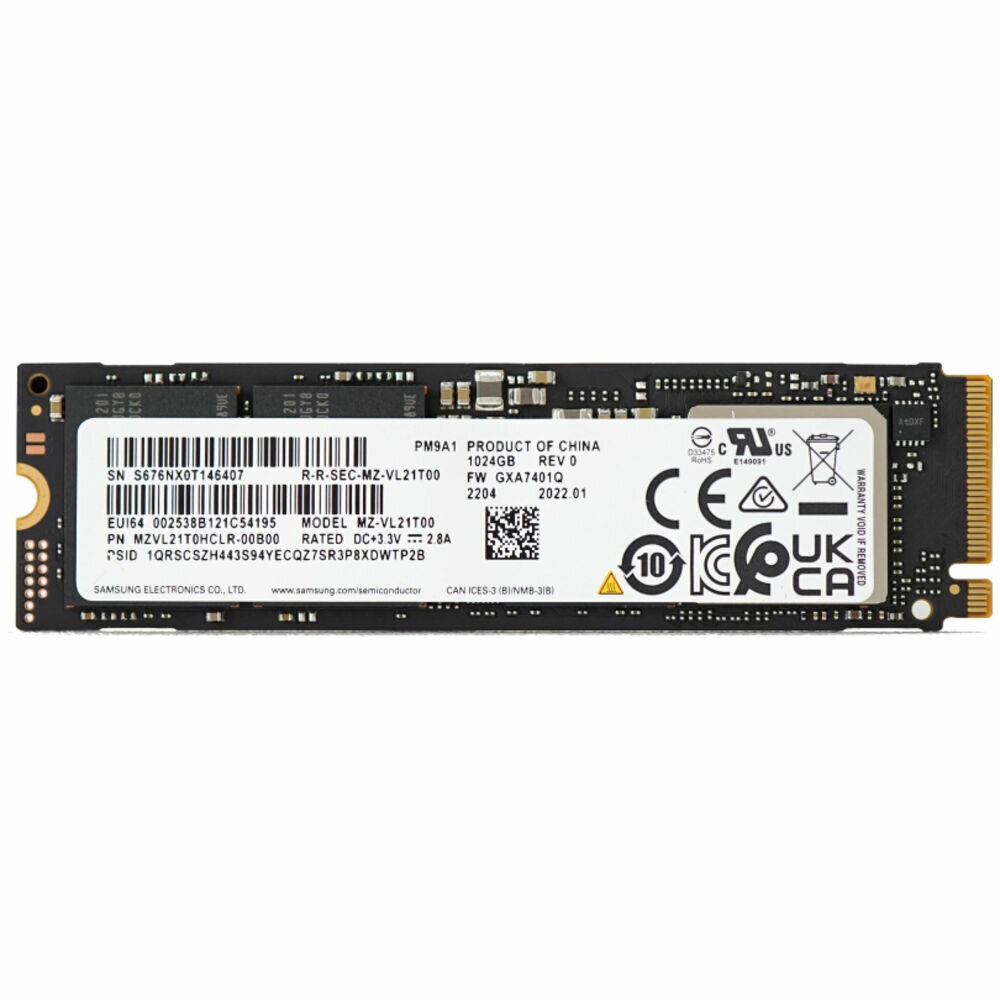 Накопитель SSD M.2 Samsung 1.0Tb PM9A1 (MZVL21T0HCLR-00B00) OEM (PCI-E 4.0 x4, up to 7000/5100MBs, 800000 IOPs, 3D NAND, 22х80mm)