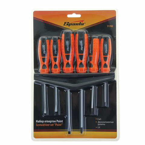 Набор отверток Point , CrV, двухкомпонентные рукоятки, 6 шт, Sparta 11782