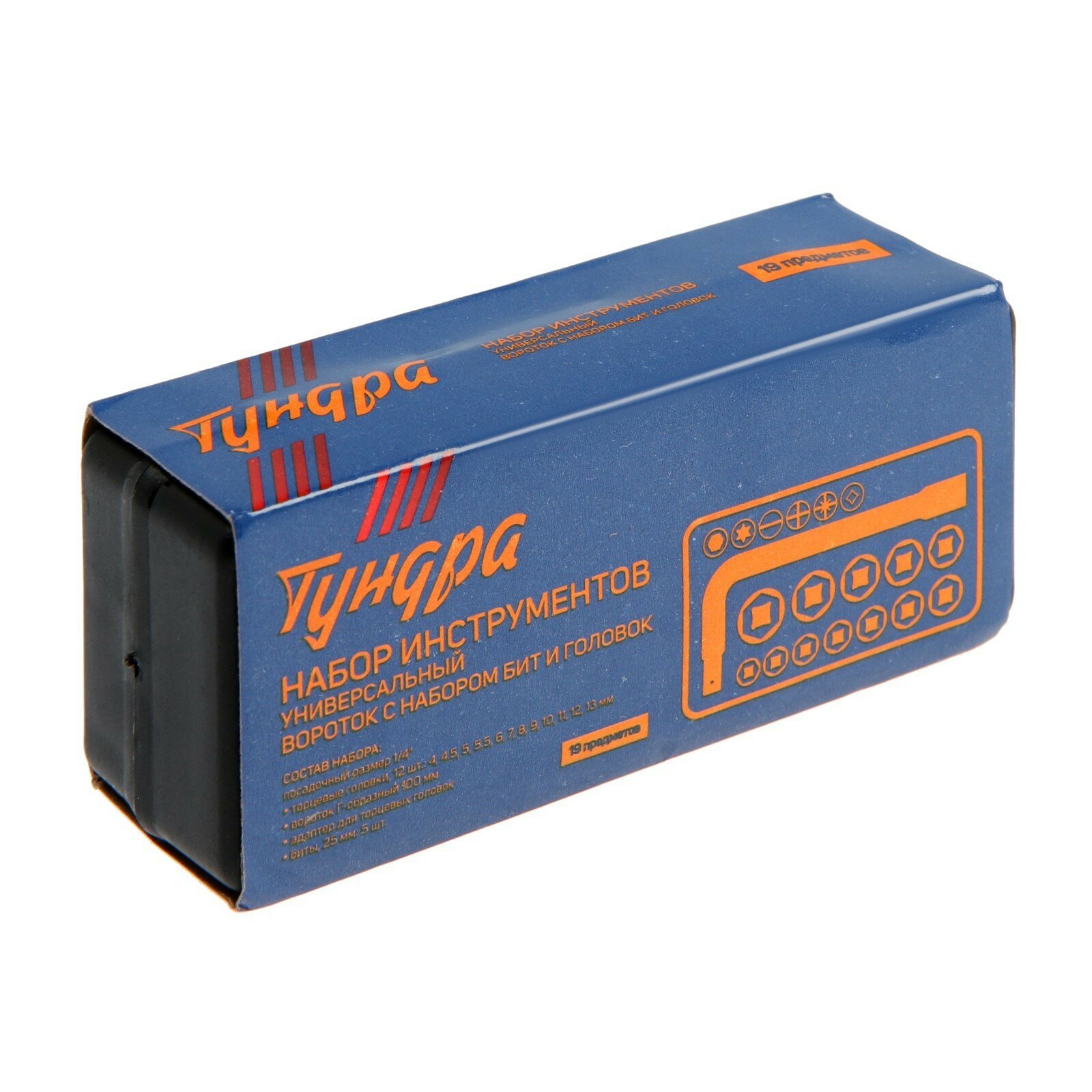 Купить Набор торцевых головок и бит тундра, вороток, 19 предметов