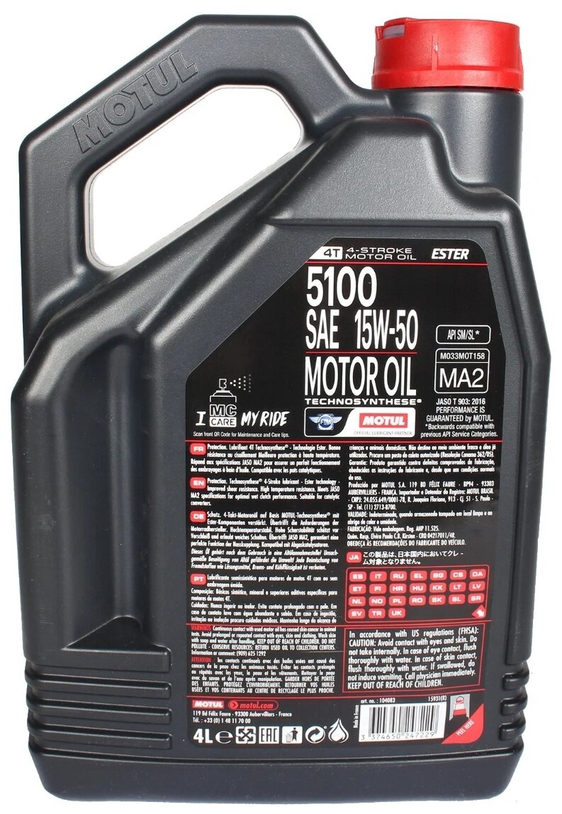 MOTUL 104083 Масло моторное для мотоциклов 15W50 MOTUL 4л Technosynthese 5100 SM, MA2 4Т 1шт