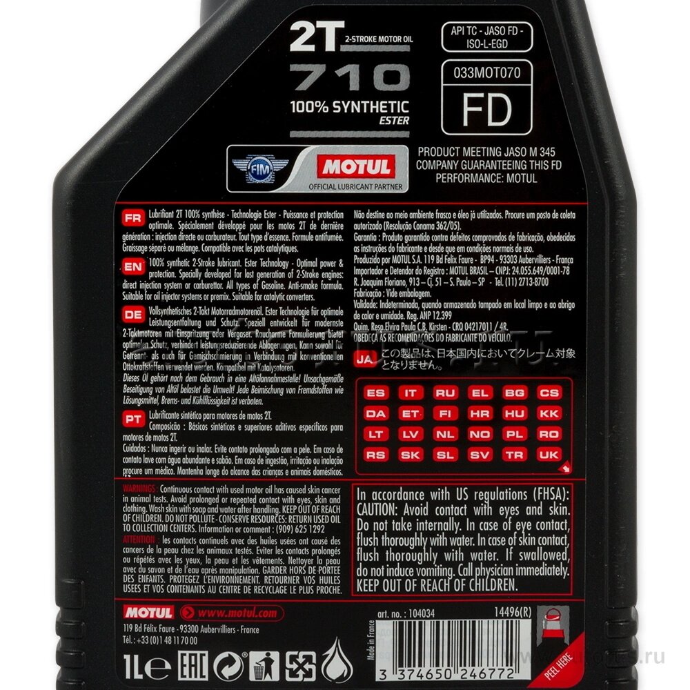 Рњр°Сѓр»Рѕ Рјрѕс‚Рѕсђрѕрѕрµ Рґр»Сџ Рјрѕс‚Рѕ Motul 1Р» Сѓрёрѕс‚Рµс‚Рёрєр° 710 ту, Fd, L-Egd 2С‚ MOTUL арт. 104034