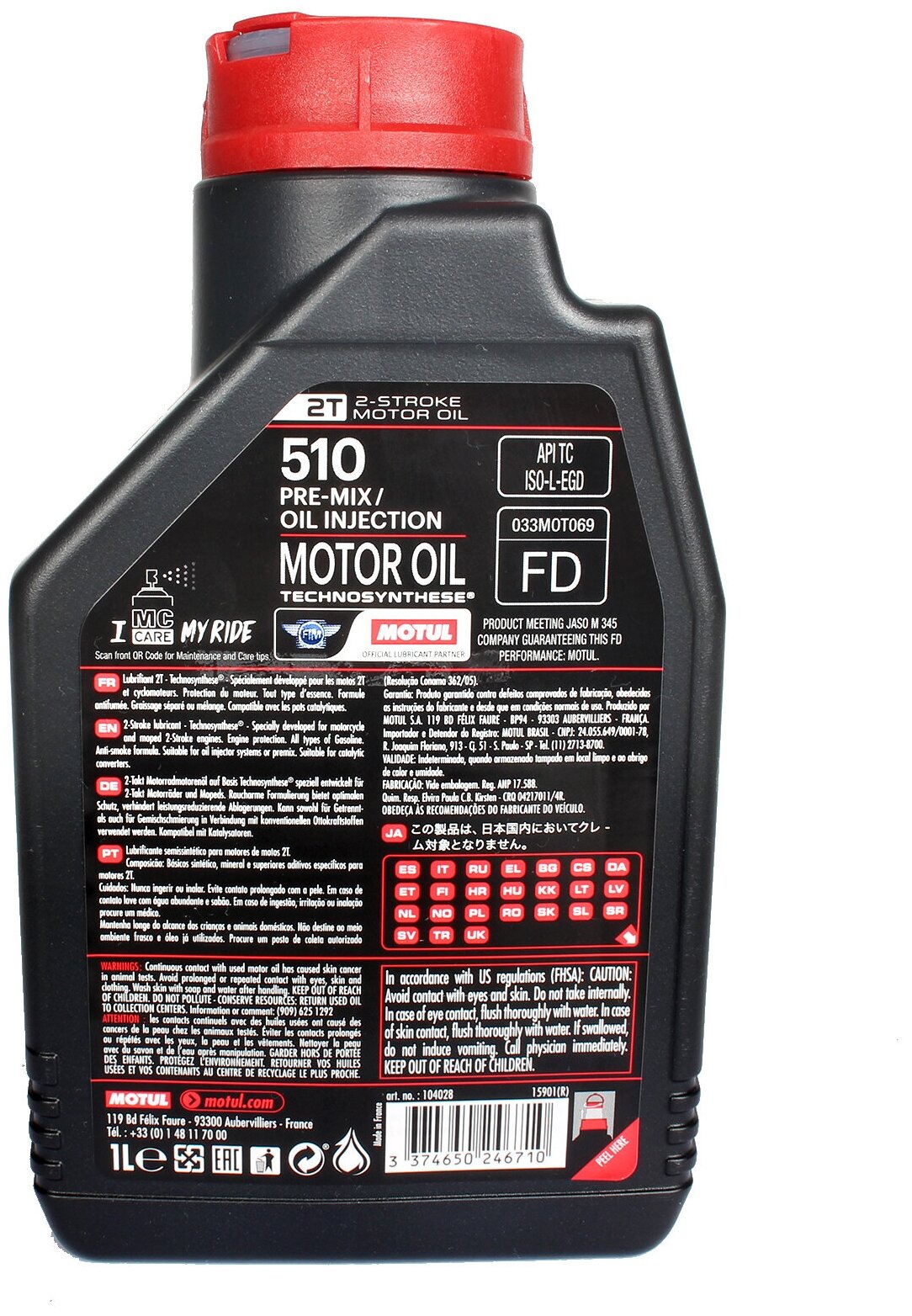 MOTUL 104028 Масло моторное 2T MOTUL 510 полу 1 л 104028 1шт