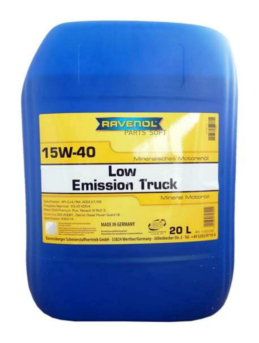 Масло моторное 15w40 Low Emission Truck RAVENOL 20л