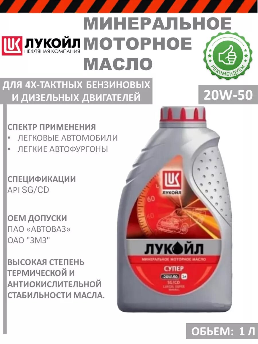 LUKOIL Масло Lukoil Супер 20W-50 1L (Минер) Моторное Масло Для Легковых Автомобилей Допуск И Рекомендации Оао "Автоваз" Оао ".