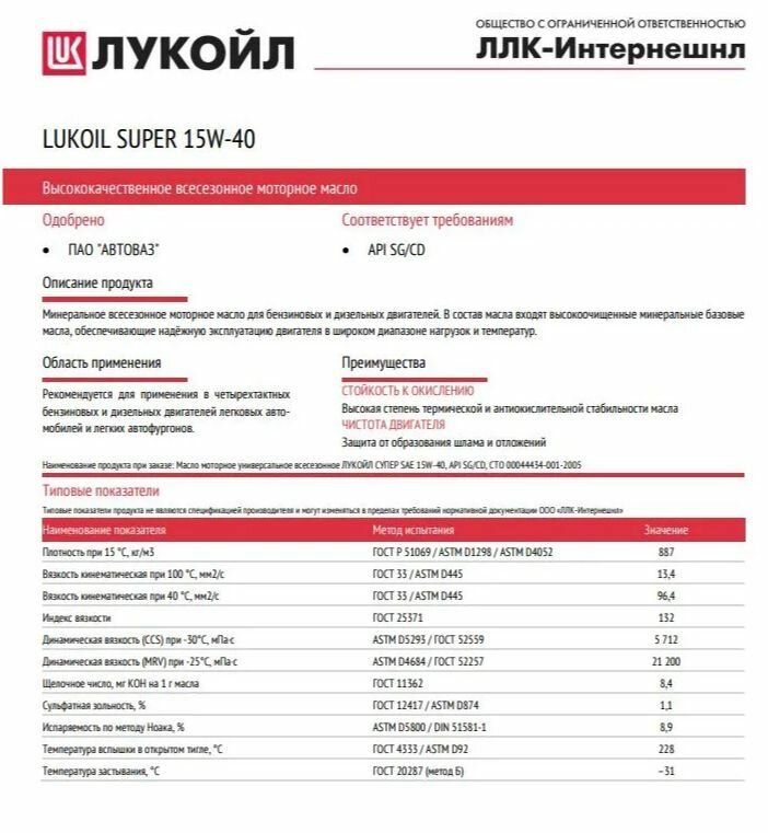 СохранитьМоторное масло лукойл супер sg/cd sae 15w40 (5л) 19196 интересное: