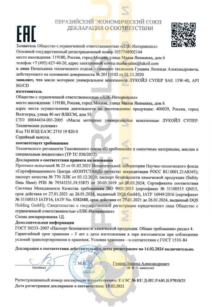 СохранитьМоторное масло Лукойл Супер SAE 15W-40, API Sg/cd, 5 л 19196 . интересное: