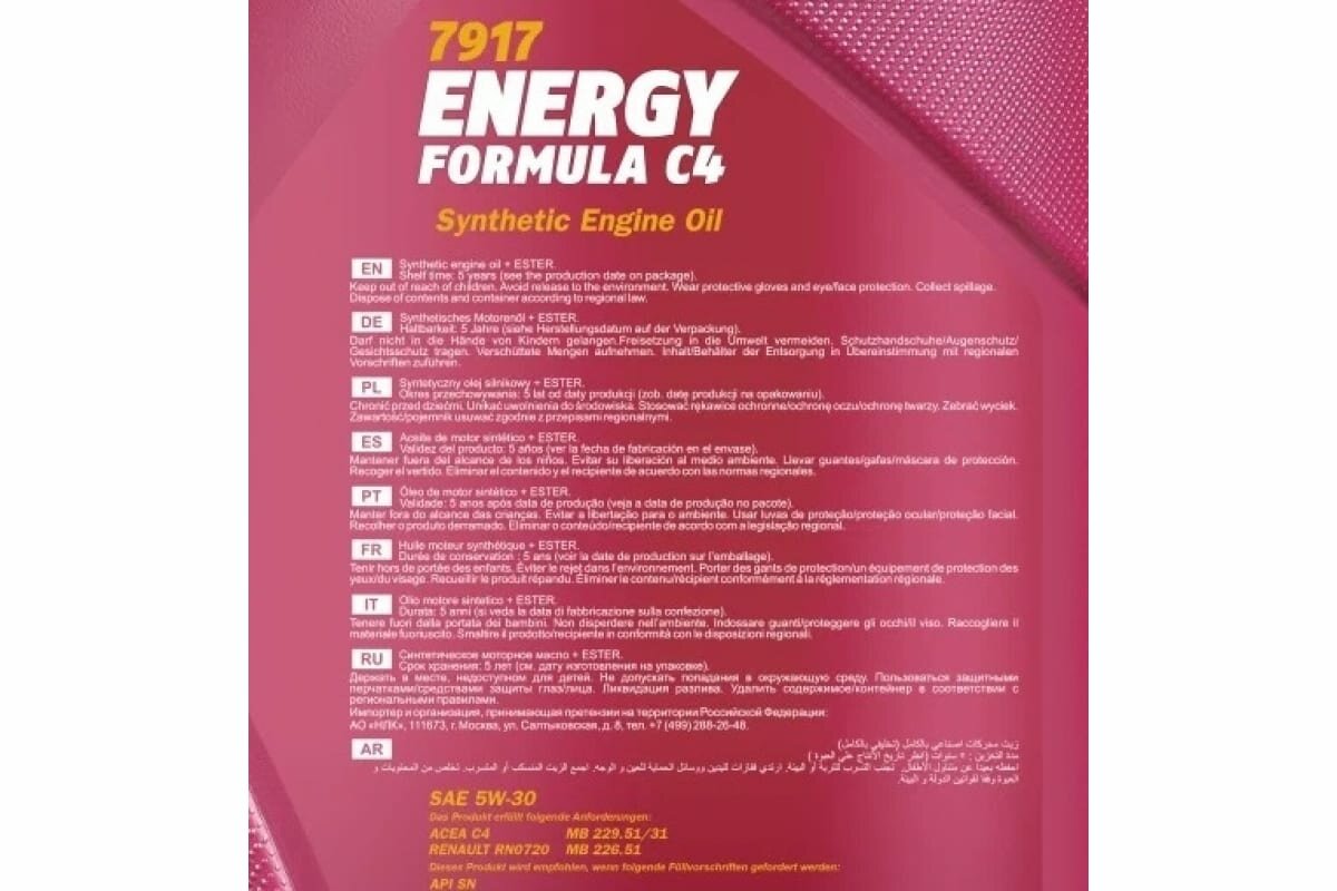 Купить 7917-5 Mannol Energy Formula C4 5W-30 Синтетическое Моторное Масло 5W-30 5Л MANNOL арт. MN7917-5