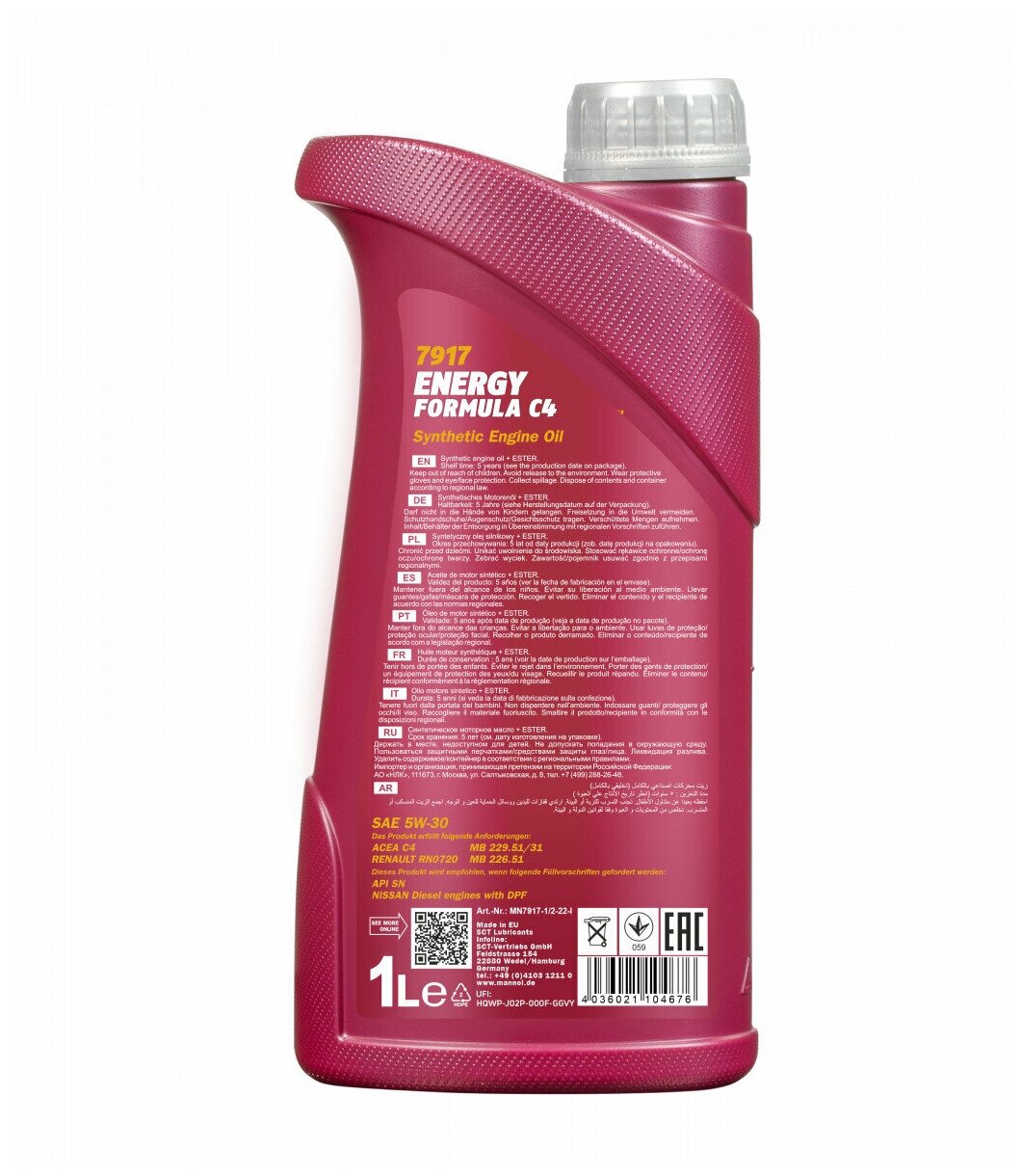 Купить 7917-1 Mannol Energy Formula C4 5w-30 Синтетическое Моторное Масло 5w-30 1л MANNOL арт. MN7917-1