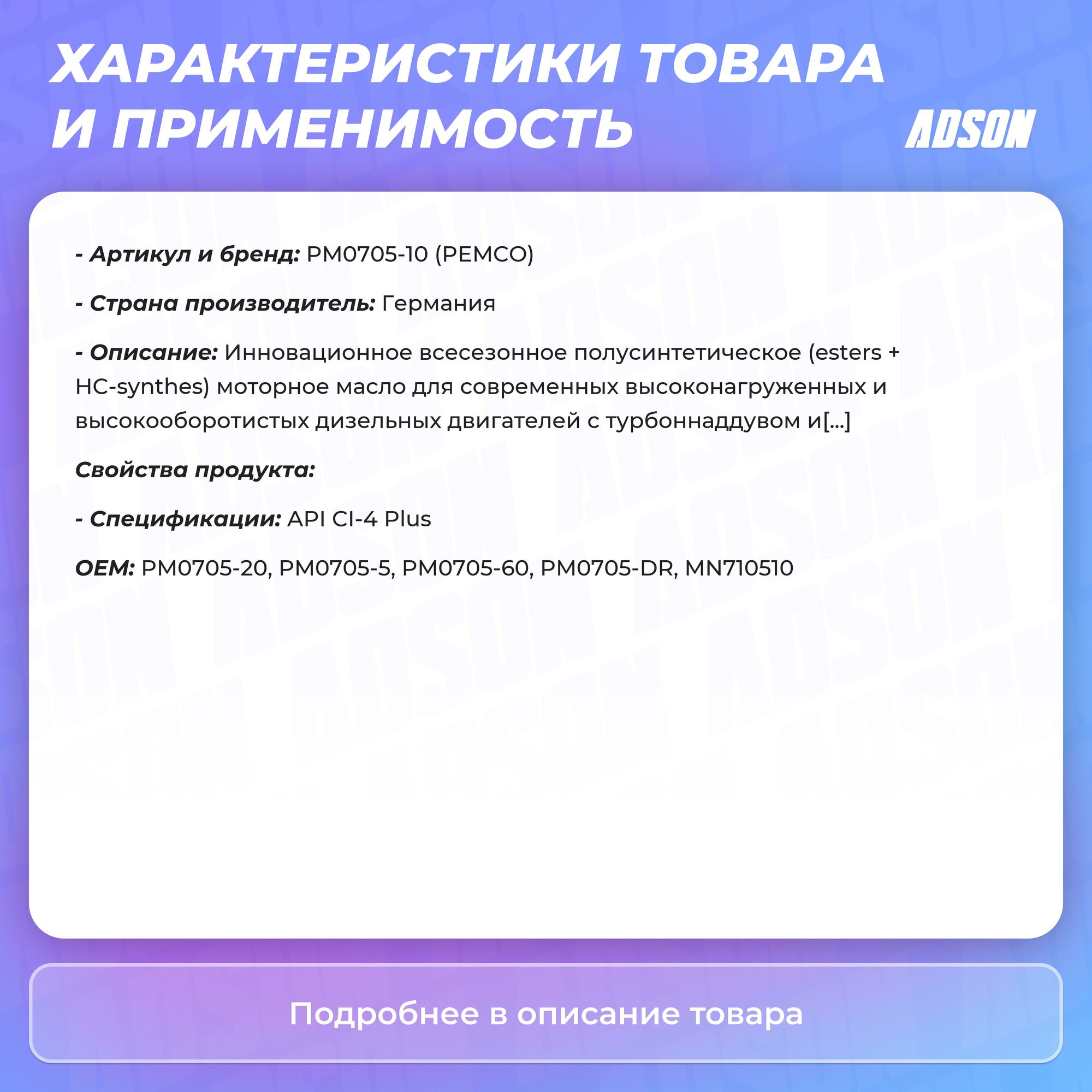 PEMCO 10W-40 Diesel G-5 Uhpd 10Л (Полусинт. Мотор. Масло) Hcv интересное: