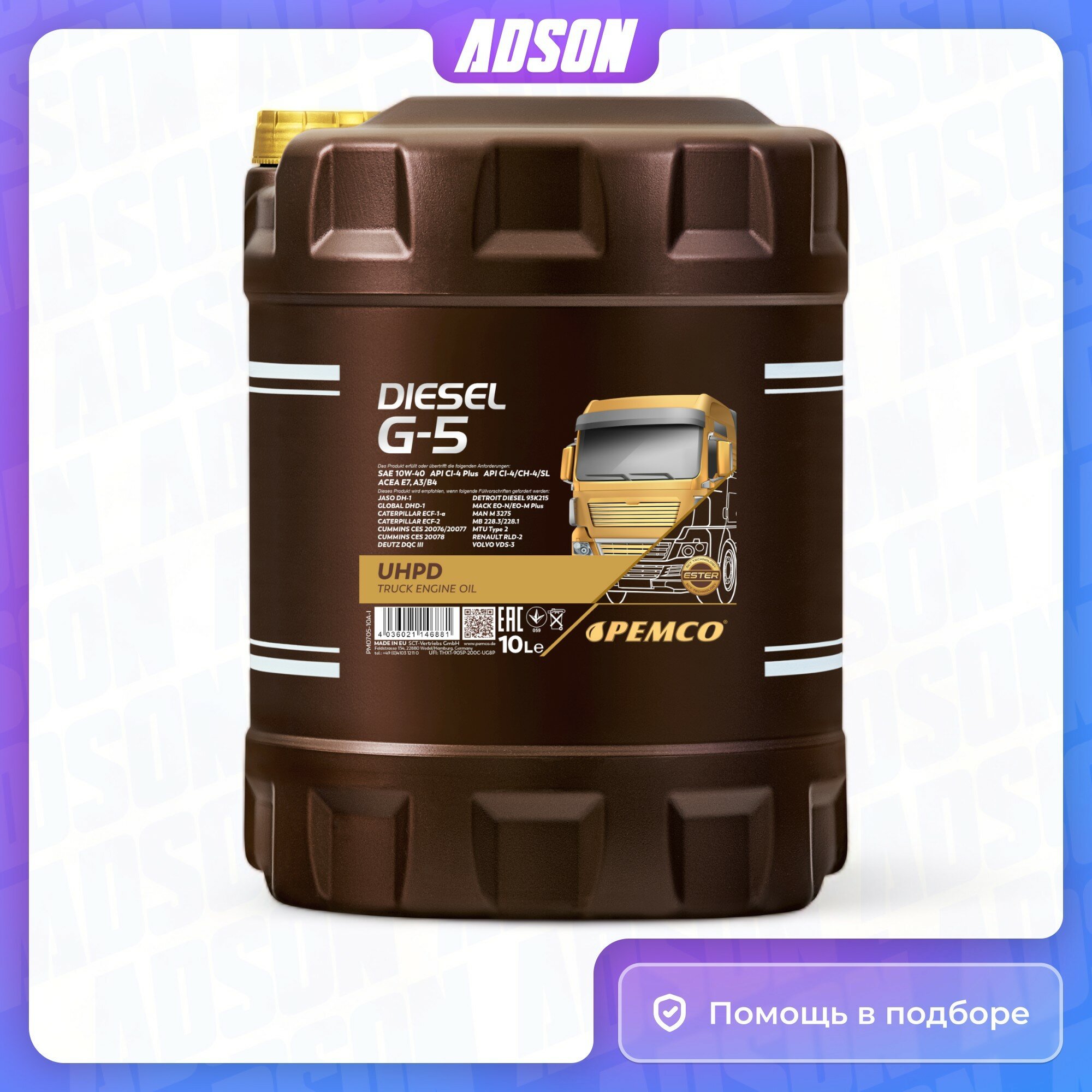 PM070510 PEMCO 10W-40 Diesel G-5 UHPD 10л (полусинт. мотор. масло) HCV