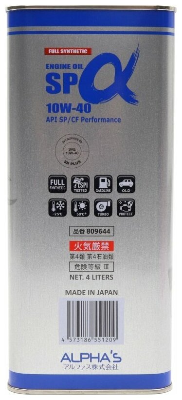 ALPHAS 809644 Масло моторное 10W-40 4л SP/CF (синтетика) ALPHA'S 809644