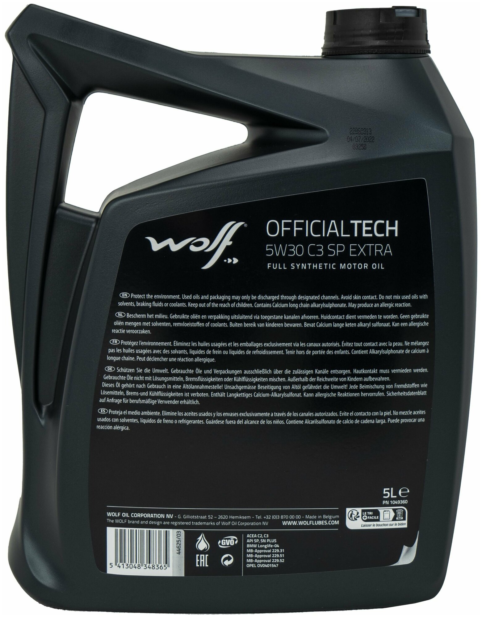 WOLF OIL 1049360 Масло моторное Wolf Oil OFFICIALTECH C3 SP EXTRA 5W-30 синтетическое 5 л 1049360