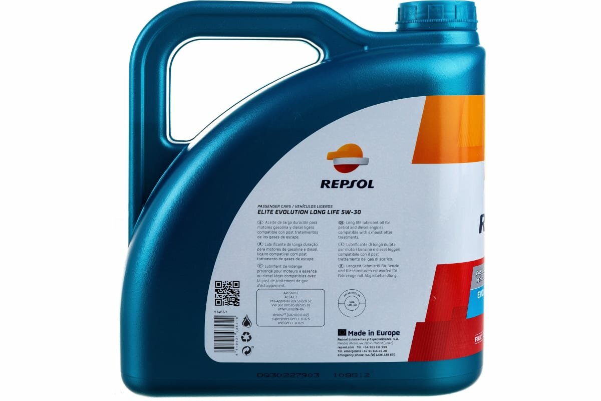 Купить Масло моторное REPSOL ELITE EVOLUTION LONG LIFE 5W30 4л API SN/CF ACEA A3/B4-04 C3 MB-Approval 22 6397/R