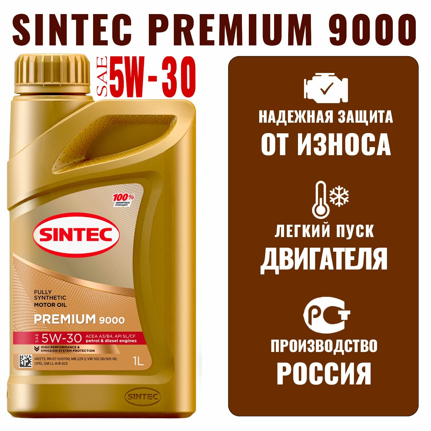 SINTEC Рњр°Сѓр»Рѕ Рјрѕс‚Рѕсђрѕрѕрµ 5W30 4Р» Sintec Premium 9000 A3/B4 Сѓрёрѕс‚Рµс‚Рёс‡Рµсѓрєрѕрµ