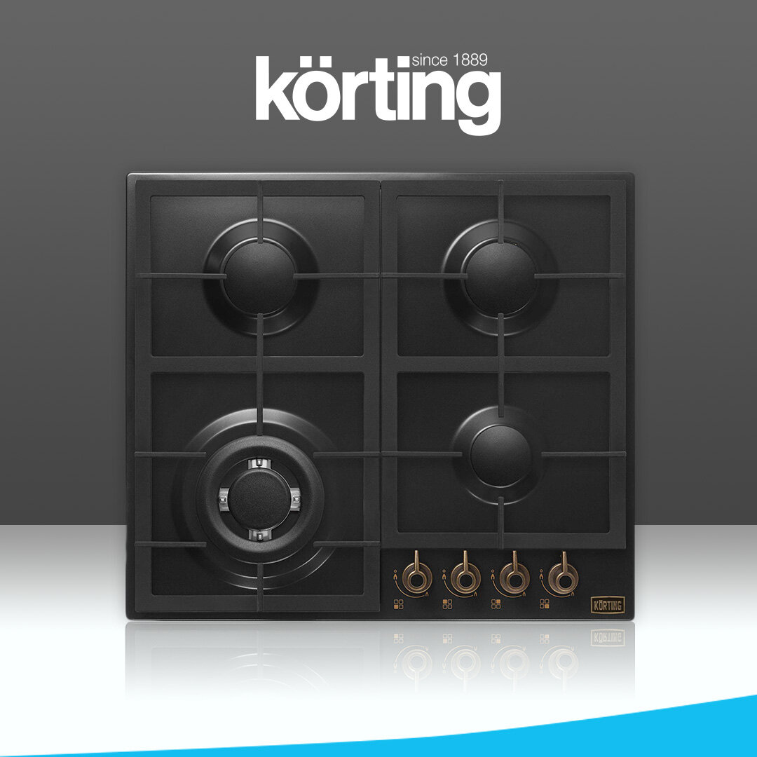ресный дизайн. Газовая панель Korting HG 665 имеет 4 конфорки, а металлические стильные переключатели регулируются легко и плавно.Чугунные решетки устойчивые и надежные. А функции газ - контроль и электроподжиг создают удобство и безопасность. |