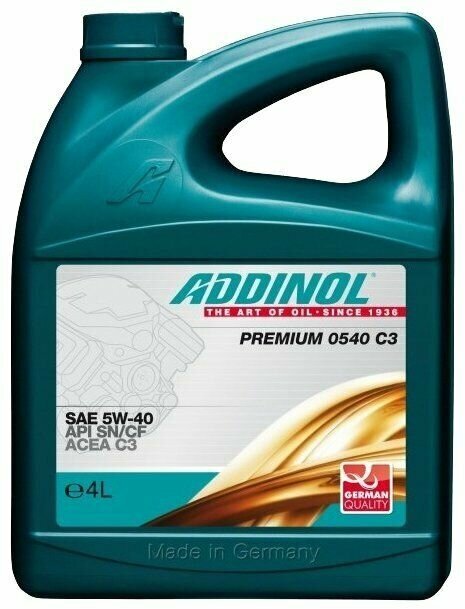 Ниже Вы можете прочитать отзывы на Масло моторное синтетическое ADDINOL Premium 5W40 C3 API SN/CF ACEA C3 4л., ознакомится с подробными характеристиками, посмотреть интересные обзоры и фотографии на Масло моторное синтетическое ADDINOL Premium 5W40 C3 API SN/CF ACEA C3 4л..