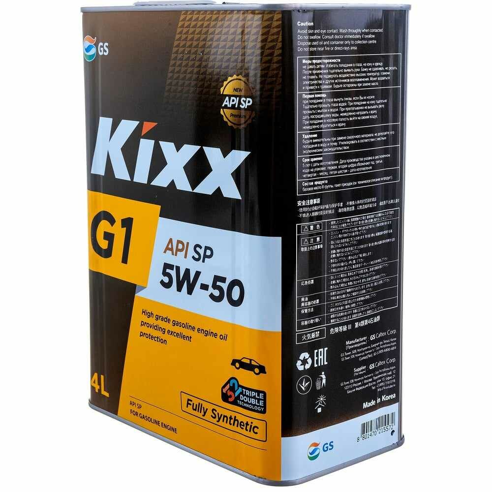 Синтетическое моторное масло Kixx G1 5W-50 SP, 4 л, 3.5 кг, 1 шт