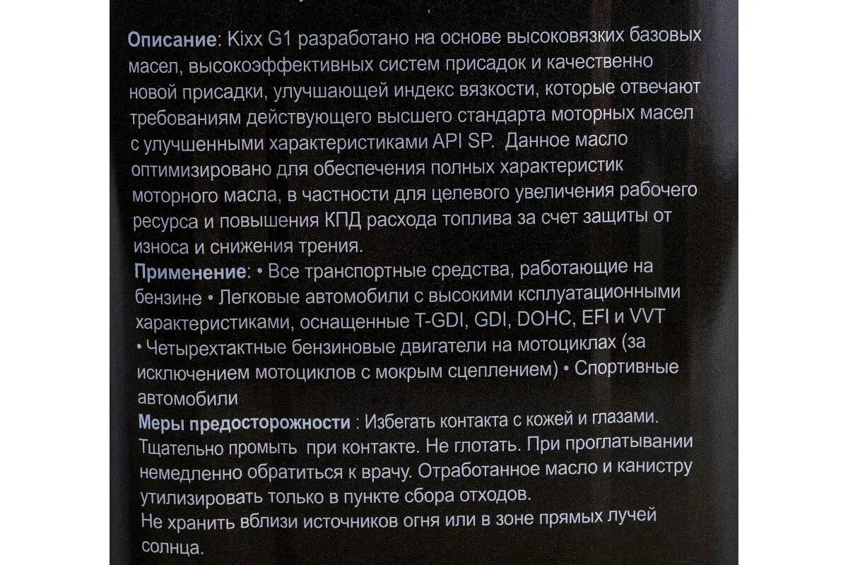 Масло моторное 5W50 Kixx G1 API SP (синт.) пластик (1л)