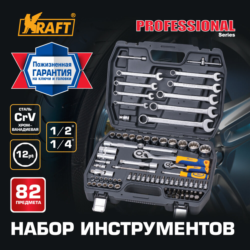Набор инструмента 1/2Dr и 1/4Dr 82 предмета с 12 гран. головками (tool) KRAFT / арт. KT700681 - (1 шт)