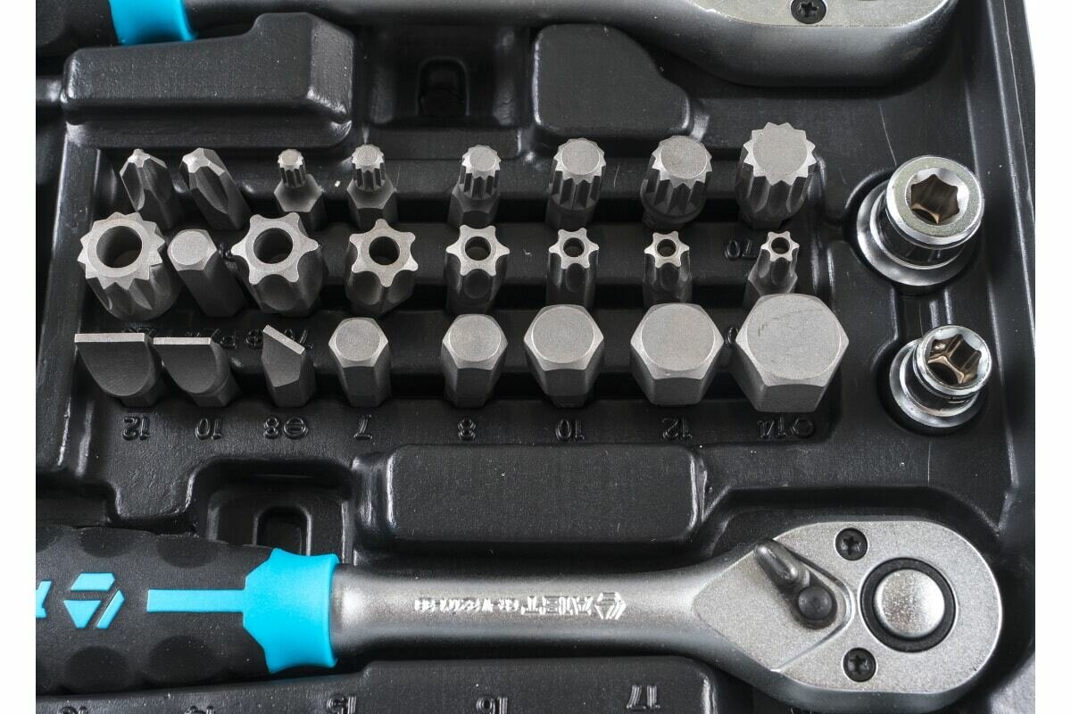 | Головки торцевые подробно | 1/4": 4, 4.5, 5, 5.5, 6, 7, 8, 9, 10, 11, 12, 13, 14 мм; 1/4" удлинённые: 4, 5, 6, 7, 8, 9, 10 мм; 1/4" TORX (E-тип): Е4, Е5, Е6, Е7, Е8; 3/8": 10, 11, 12, 13, 14, 15, 16, 17, 18, 19 мм; 3/8" удлинённые: 10, 11, 12, 13, 15 мм; 3/8" TORX (E-тип): Е10, Е11, Е12, Е14, Е16, Е18; 3/8" свечные: 14 (12-гр.), 18 мм; 1/2": 10, 11, 12, 13, 14, 15, 16, 17, 18, 19, 20, 21, 22, 24, 27, 30, 32 мм; 1/2" удлинённые: 16, 17, 18, 19, 22 мм; 1/2" TORX (E-тип): Е20, Е24; 1/2" свечные: 16, 21 мм; 1/4" Головки-вставки: PH1, PH2, SL4, SL5.5, SL7, H3, H4, H5, H6, H7, T5H, T6H, T8H, T9H, T10H, T15H, T20H, T25H, T27H, T30H, T40H, TS10, TS15, TS20, TS25, TS27, TS30, TS40, TS45, TS50 |