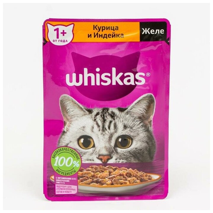 Влажный корм Whiskas для кошек, курица/индейка, желе, 75 г