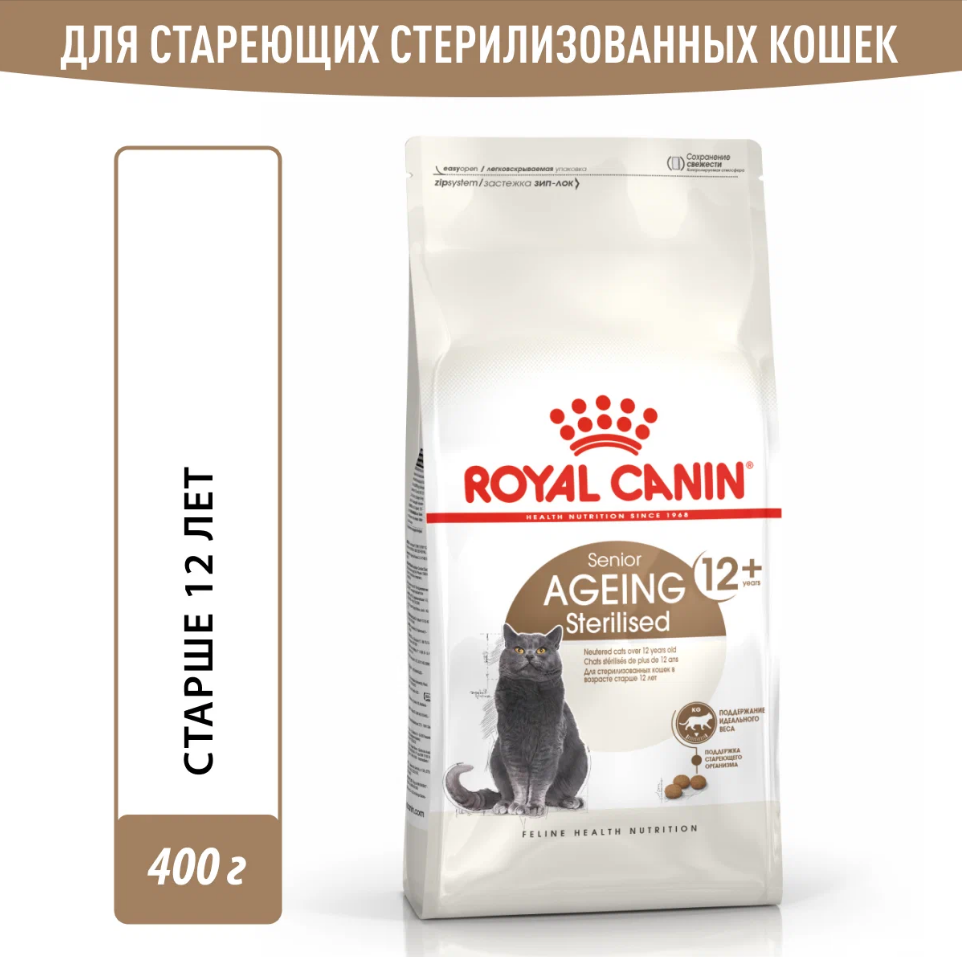 Корм Royal Canin Эйджинг Стерилайзд 12+, 0,4кг, сухой корм для стерилизованных кошек и кастратов старше 12 лет