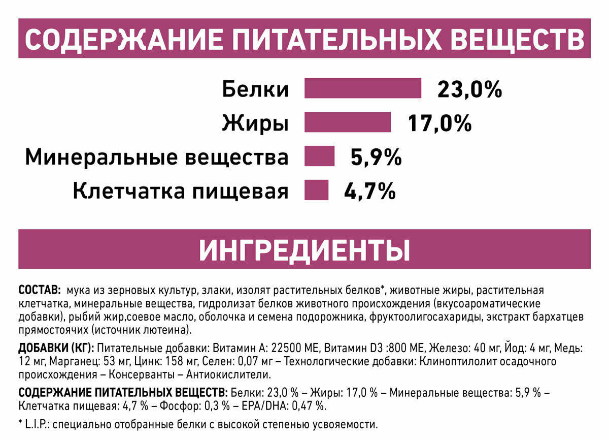 | Возраст животного | пожилые (7+) / взрослые (1-6 лет) |