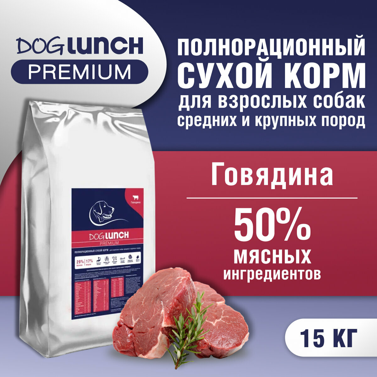 DOG LUNCH PREMIUM для взрослых собак средних и крупных пород с говядиной (15 кг)