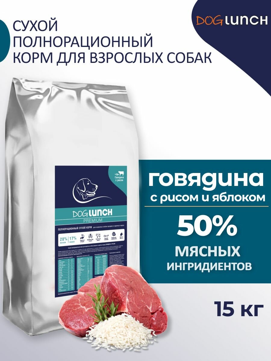 DOG LUNCH PREMIUM для взрослых собак средних и крупных пород с говядиной и рисом (15 кг)