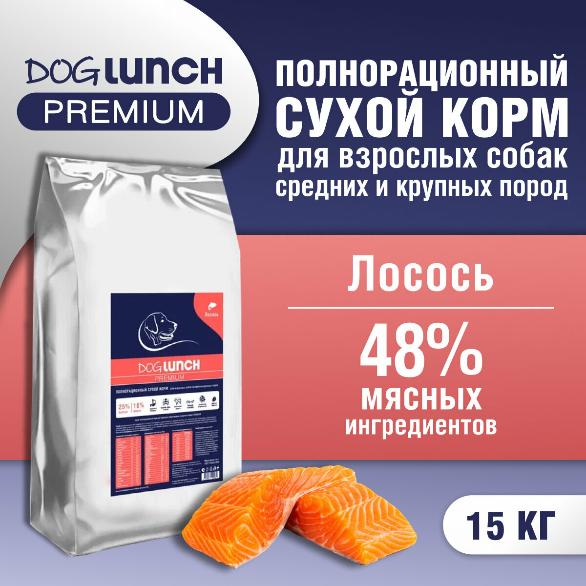 DOG LUNCH PREMIUM для взрослых собак средних и крупных пород с лососем (15 кг)