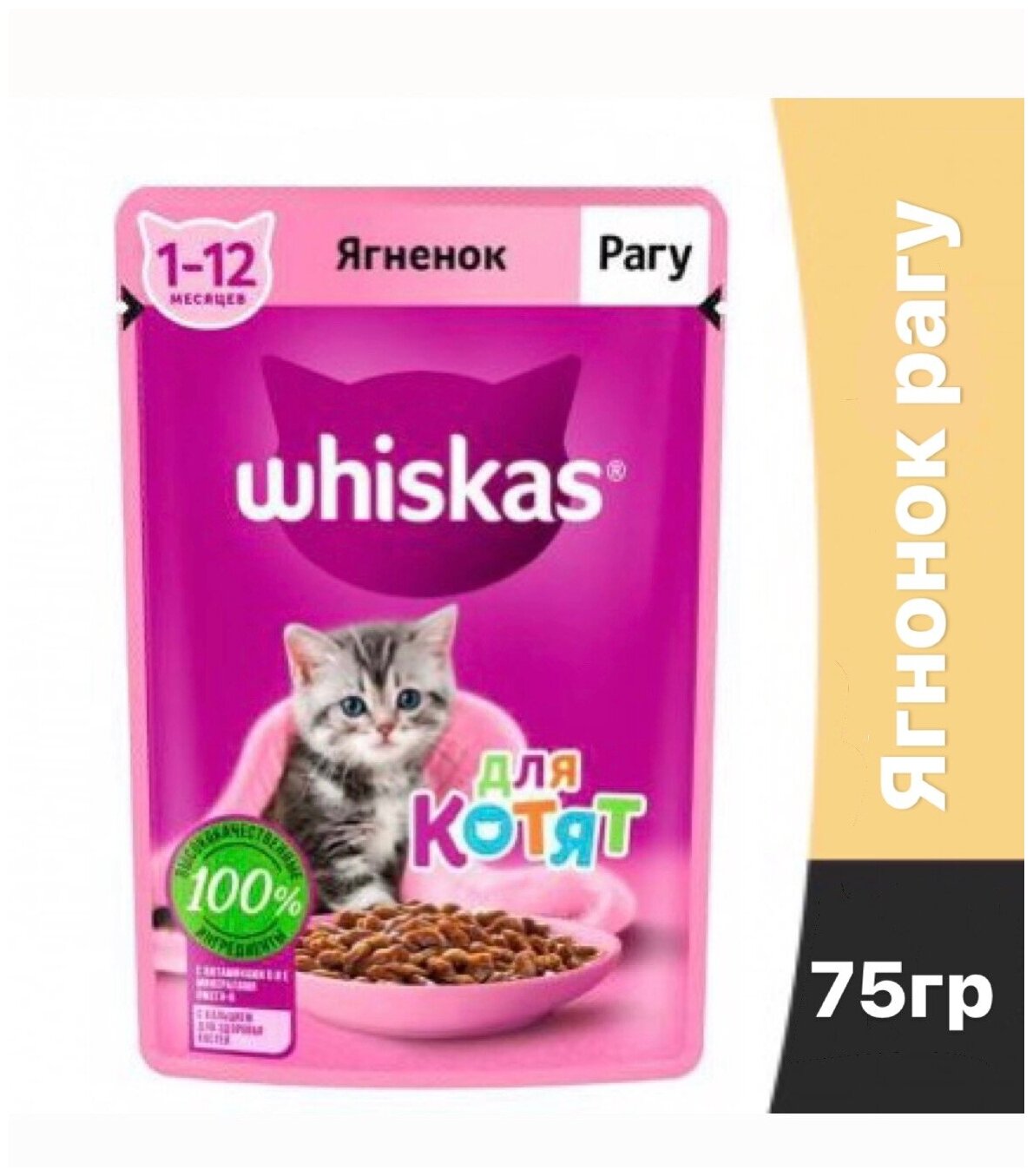 Корм консервированный Whiskas (Вискас) для котят с ягненком 75г*27 интересное: