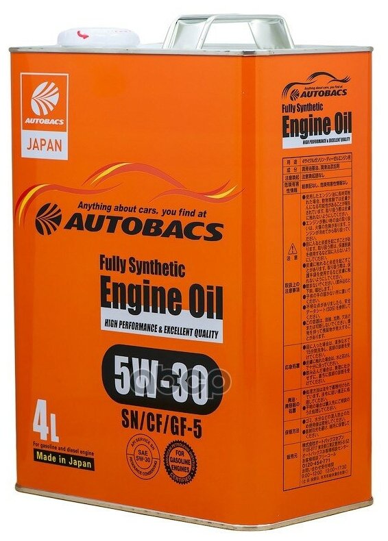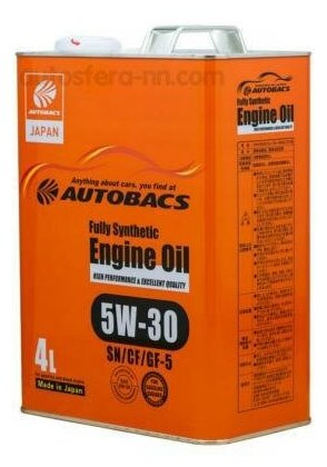 Моторное масло Autobacs Engine Oil, Fully Synthetic, SN/CF, GF-5, SAE 5w-30, 4 л