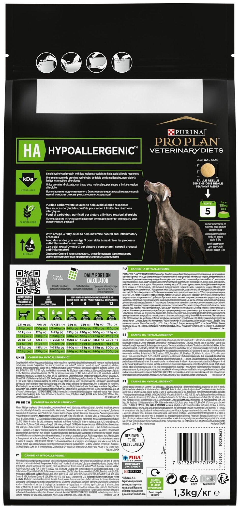 Корм для собак PRO PLAN Veterinary Diets HA при пищевой непереносимости сух. 1,3кг (упаковка - 4 шт)