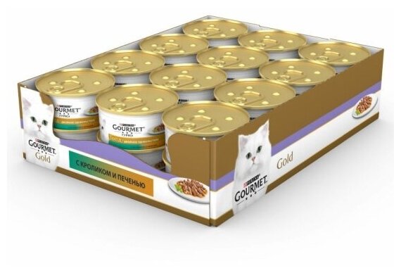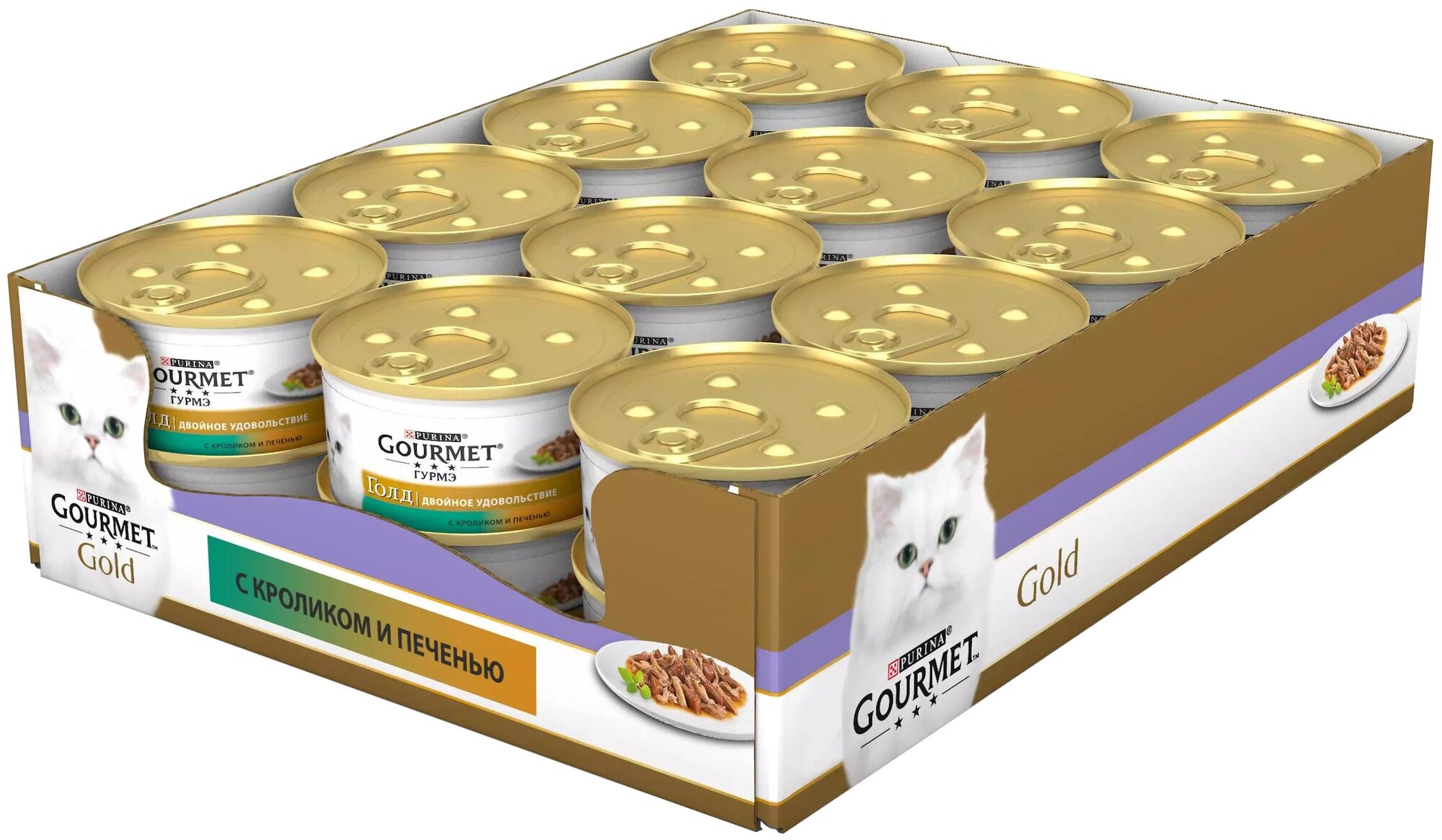 Влажный корм для кошек Gourmet Голд Двойное удовольствие, с кроликом и печенью 12 шт. х 85 г (кусочки в соусе)