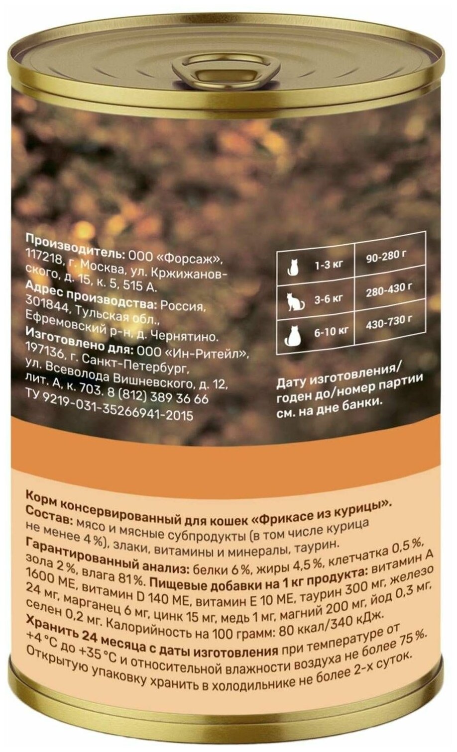 Консервы для кошек Фрикасе из курицы, 415 гр
