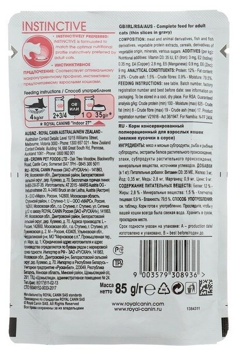 Влажный корм RC Instinctive для кошек, в соусе, пауч, 85 г интересное: