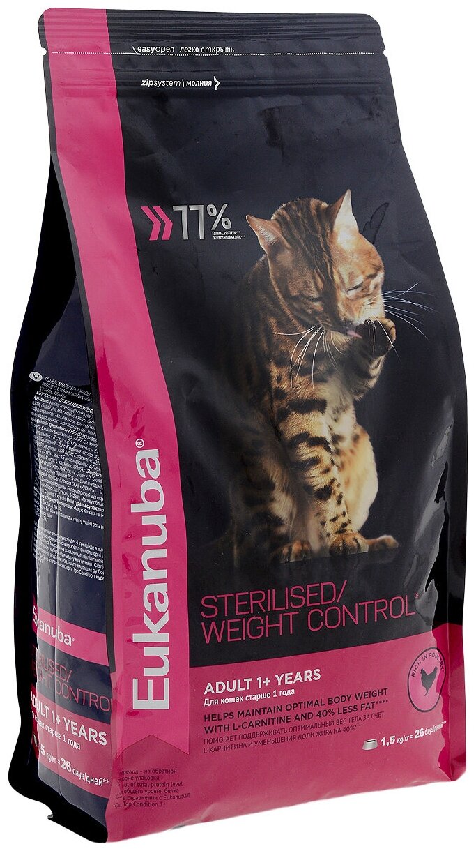 Сухой корм EUKANUBA 1,5кг для стерилизованных кошек и с избыточным весом интересное:
