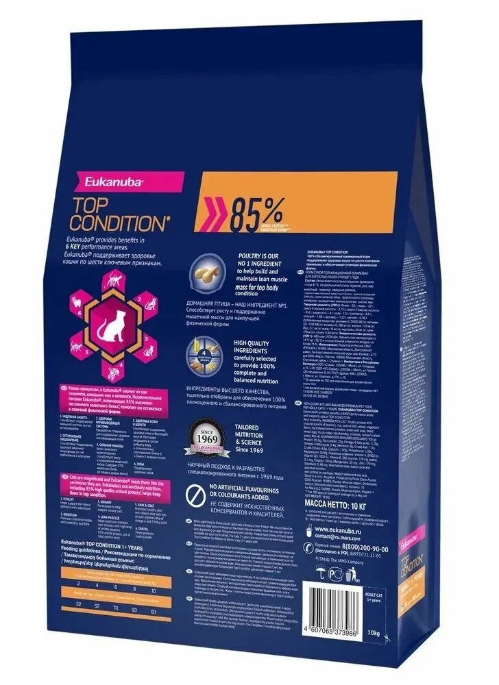 Eukanuba корм для взрослых кошек с курицей (adult top condition) интересное: