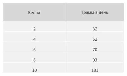 | Дополнительная информация | нормы кормления указаны в таблице, у животного всегда должна быть свежая вода |